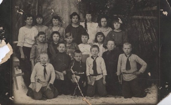 Рис. 3 Учителя и ученики 1920-х годов, в 1 ряду 1 слева, предположительно, Петухов Вячеслав Иванович, 2 слева Долинин Павел Васильевич, фотография из семейного архива Бушуевой И. А.