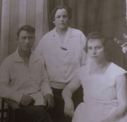 Рис. 6 Будрин Юлий Николаевич, Будрина Зоя Алексеевна, Рыжкова Антонина Алексеевна (стоит), сестра Зои Алексеевны, 1920-е - 1930-е годы, фотография из семейного архива Данковцевой Л. К.