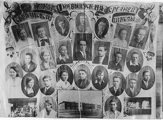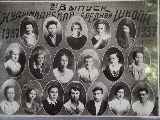 Рис. 15 Теплоухова Надежда Александровна с учениками, 2-я справа в нижнем ряду Тунева Мария Александровна, Кудымкар, фотография из коллекции Р. Кудымовой