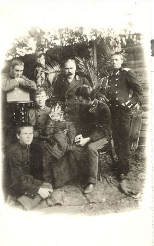 Рис. 11 Семья Вологдиных, Пермь, конец 1890 - х годов. Петр Александрович и Людмила Дмитриевна и их дети: сидит 1 слева Валентин, за ним стоит Борис, стоит справа Владимир, сидит Сергей. Нет Виктора. Фотография с сайта "Госкаталог музейного фонда России" из фондов Новочеркасского музея истории донского казачества