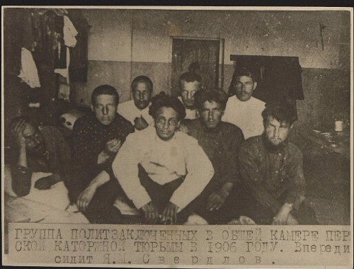 Рис. 2 Политзаключенные тюрьмы, Пермь. Свердлов Я.М. – в центре, Вологдин В.П. – крайний слева, фотография с сайта "Госкаталог музейного фонда России"