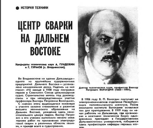 В газете «Политехник» от 7 мая 1993 года в статье «Двенадцать имён» сообщается, что проекты Вологдина отличались новизной, смелостью, оригинальностью. В статье говорится о двух таких проектах: мосте – виадуке и первом сварном судне. Первым в стране Виктор Петрович начал подготовку инженеров–сварщиков, создал дальневосточную научную школу сварщиков. «Комсомольская правда» во Владивостоке, 17 июля 2004 года: «Проезжая на Эгершельд по Казанскому мосту, вряд ли кто знает, что этот мост был построен в 1928 году. До сих пор он надежен и прочен. Это первый в России цельносварной мост. Его спроектировал и сварил тогдашний ректор Государственного Дальневосточного университета Виктор Петрович Вологдин со своими помощниками.»