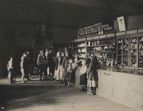 Для работы в лавках требовалось получить свидетельство приказчика. Такие свидетельства имели как продавцы в лавках купцов, так и в лавках потребительского общества.