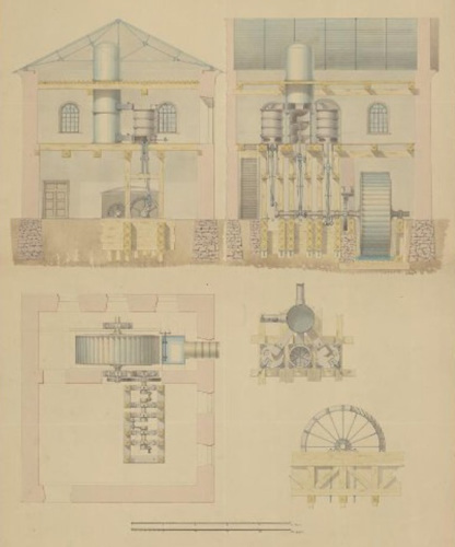Рис. 8 Разрез меха в Кувинском заводе, автор Август Дорн, из фондов музея "Эрмитаж", сайт "Госкаталог музейного фонда России"