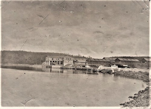 Рис. 24 Корпуса завода со стороны заводского поселения, на переднем плане река Кува, фотография из фондов Кувинского краеведческого музея "Исток"